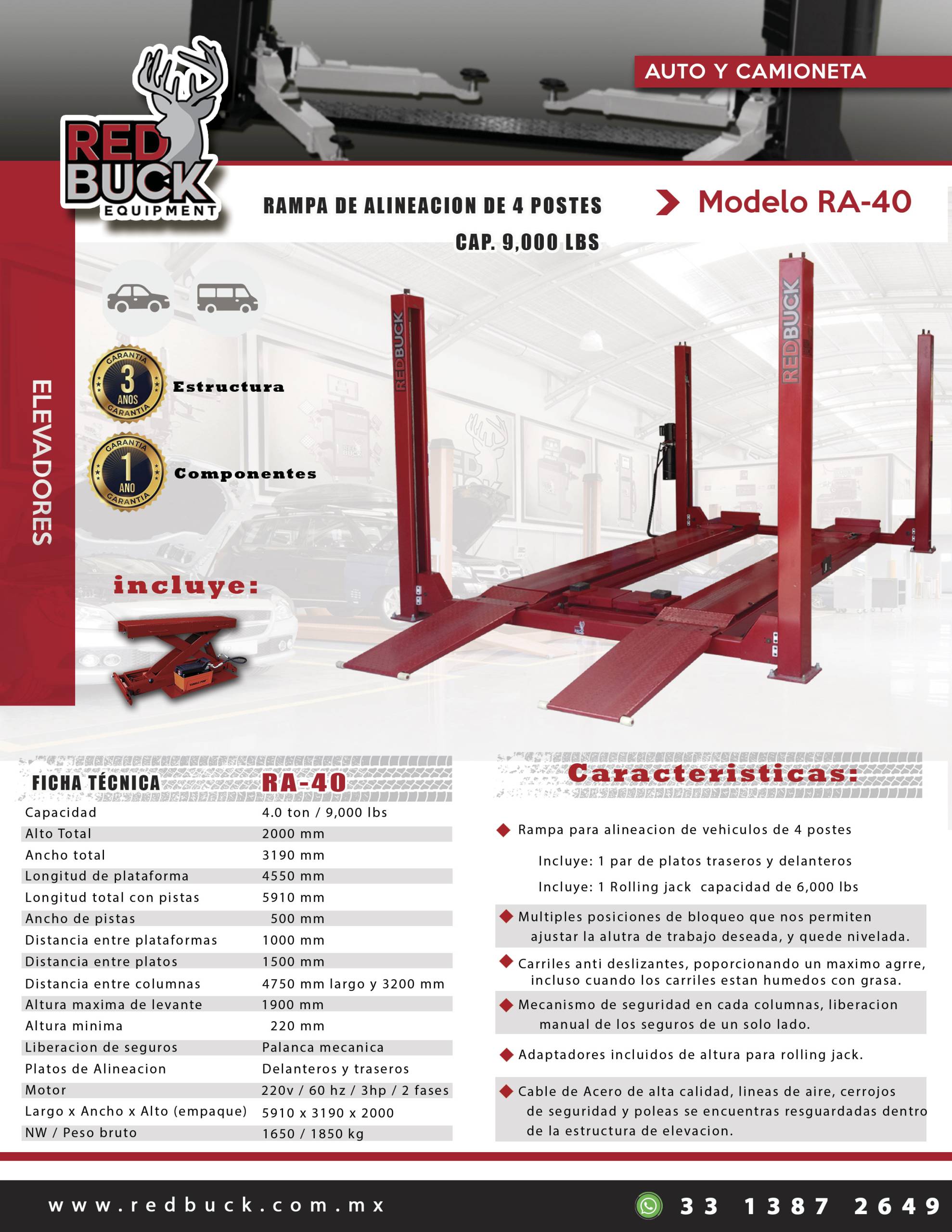 RAMPA DE 4 POSTES PARA ALINEACION CAPACIDAD 9,000 LBS